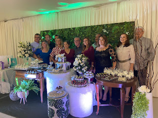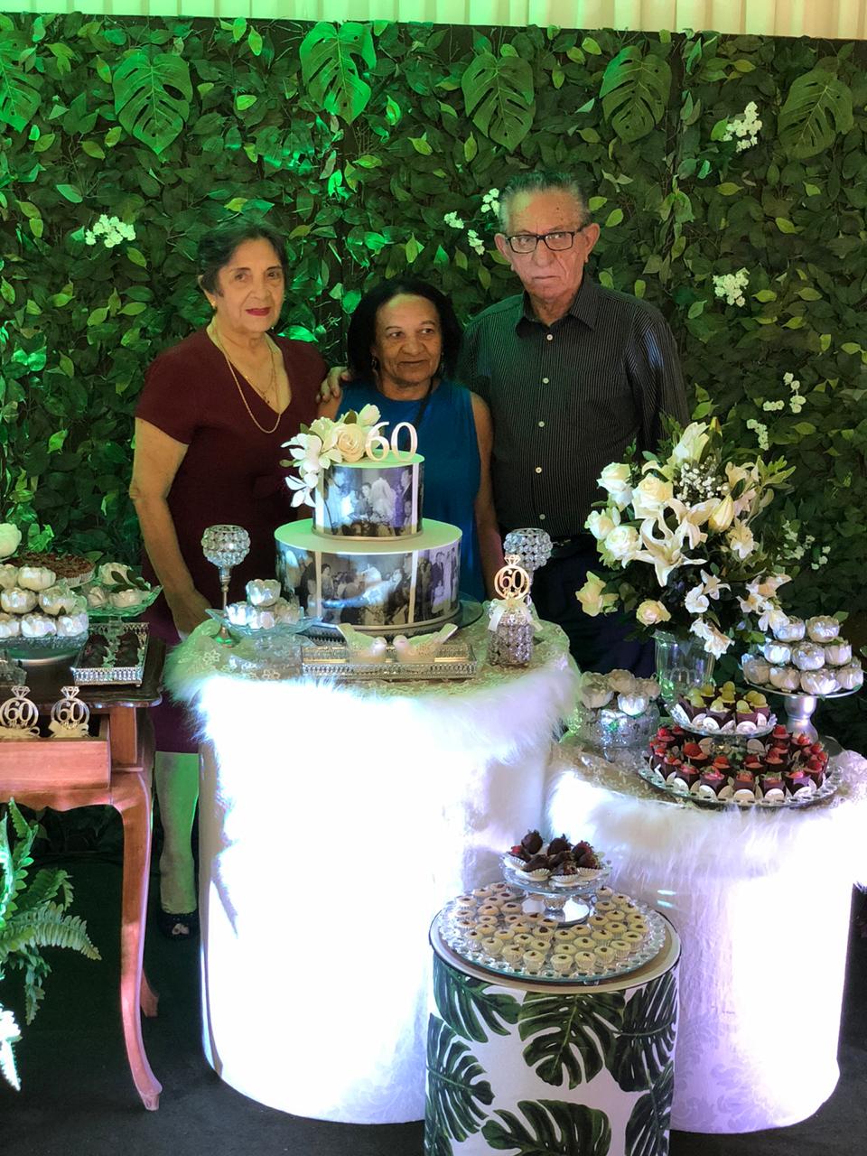 A renovação dos votos feitos pela primeira vez em 1960 aconteceu durante celebração de missa, já que estamos falando de um fervoroso casal católico devoto de Nossa Senhora da Imaculada Conceição. Após a cerimônia, os felizes anos de união foram comemorados com grande festa, que reuniu familiares e amigos, no salão do condomínio Buganvile, em João Pessoa.
